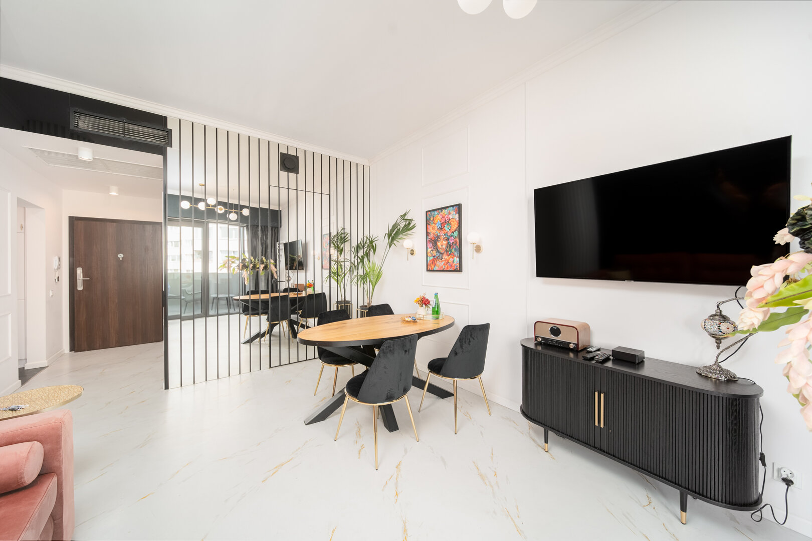 Apartament składa się z salonu z aneksem kuchennym, sypialni z podwójnym łóżkiem oraz łazienki z wanną z hyrdomasażem. Do dyspozycji naszych klientów jest także duży, zabudowany balkon z widokiem na okoliczną zabudowę. Mieszkanie wyposażone jest w niezbędny sprzęt AGD (czajnik elektryczny, ekspres do kawy, płyta indukcyjna, zmywarka, lodówka i pralka), przybory łazienkowe i kuchenne. W salonie znajduje się telewizor z dostępem do telewizji kablowej. Apartament posiada własną bezpłatną sieć Wi-Fi. Nasi goście bez dodatkowych opłat mogą w pełni korzystać z pięknego krytego basenu, saun oraz jacuzzi, które znajdują się na 1-szym piętrze. Do dyspozycji jest również taras na 27 piętrze z zapierającym dech w piersiach widokiem na panoramę miasta. Goście, którzy do naszego obiektu przyjadą samochodem mają możliwość wykupienia miejsca parkingowego w garażu podziemnym. Serdecznie zapraszamy.