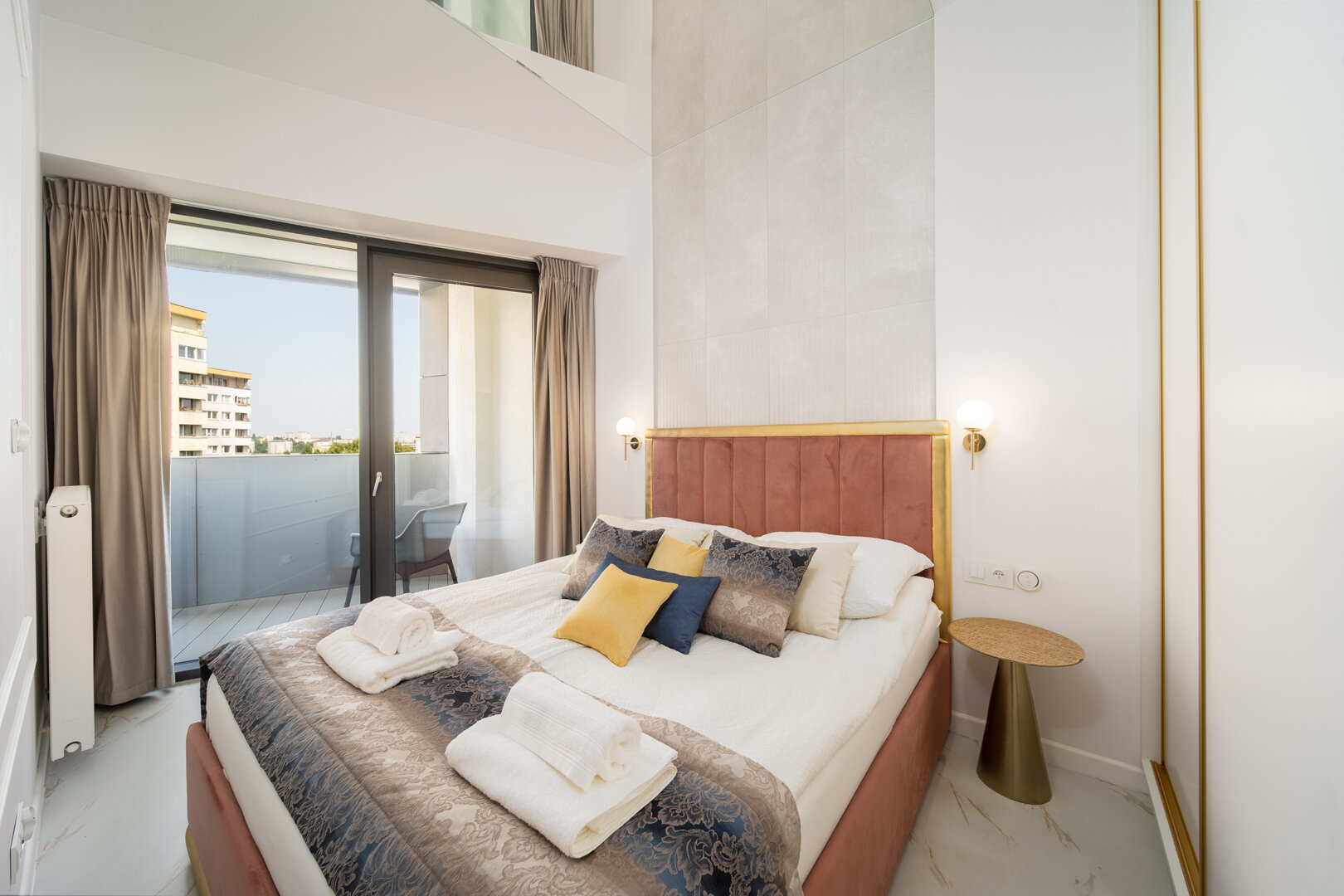 Apartament na 17 piętrze w Hanza Tower z widokiem na panoramę miasta, duże podwójne łóżko, rozkładana sofa, aneks kuchenny. Bezpłatny dostęp do strefy basenowej z saunami i jacuzzi. Taras widokowy na dachu apartamentowca.